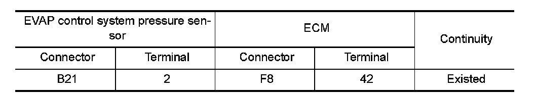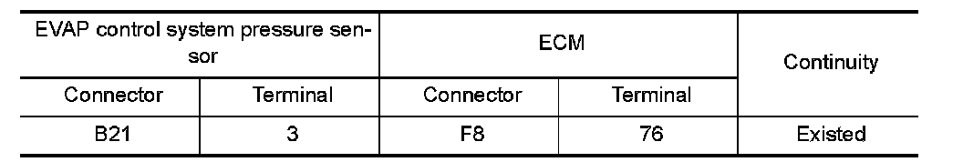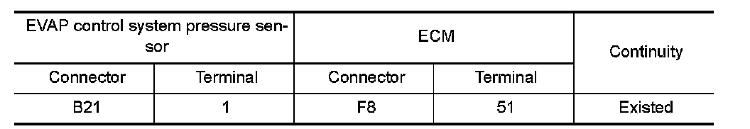 1.Check the continuity between EVAP control system pressure sensor harness connector and ECM harness connector.