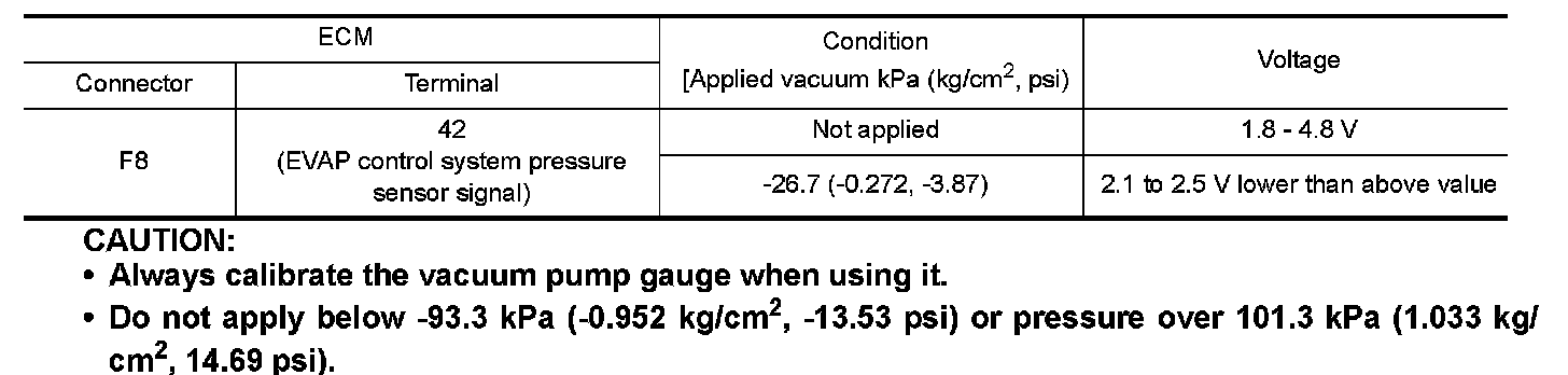 - Do not apply below -93.3 kPa (-0.952 kg/cm2, -13.53 psi) or pressure over 101.3 kPa (1.033 kg/cm2, 14.69 psi).