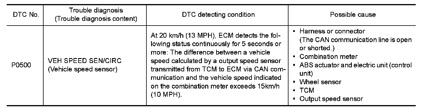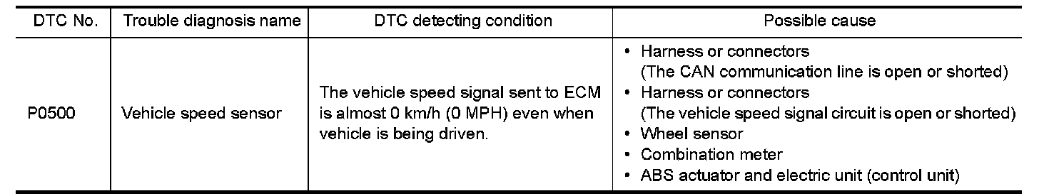 - If DTC P0500 is displayed with DTC UXXXX, first perform the trouble diagnosis for DTC UXXXX.