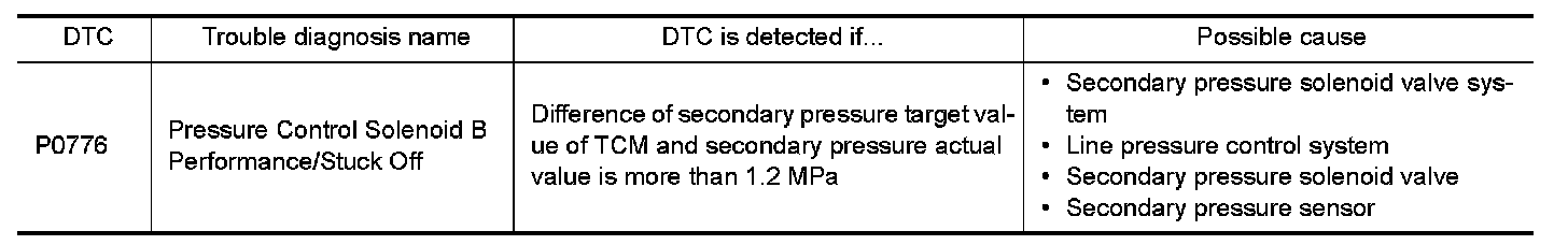- This is detected when secondary pressure solenoid valve is electrically normal and secondary pressure is low.