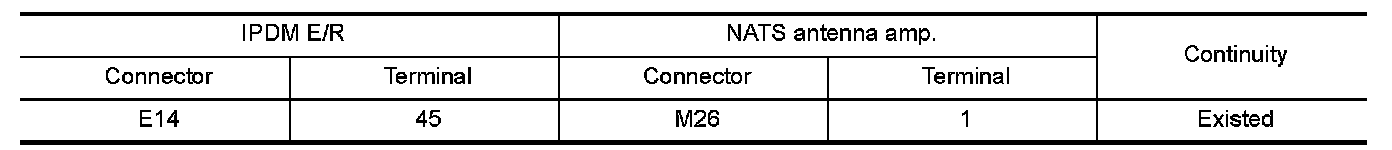 2.Check continuity between IPDM E/R harness connector and NATS antenna amp. connector.