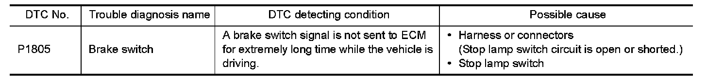 Brake switch signal is applied to the ECM through the stop lamp switch when the brake pedal is depressed.
