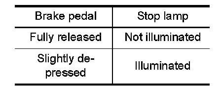 2.Check the stop lamp when depressing and releasing the brake pedal.