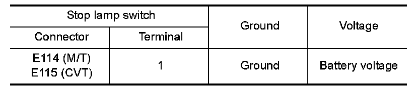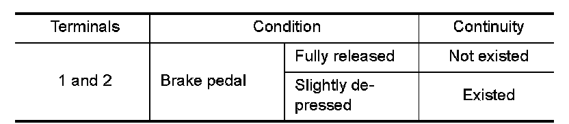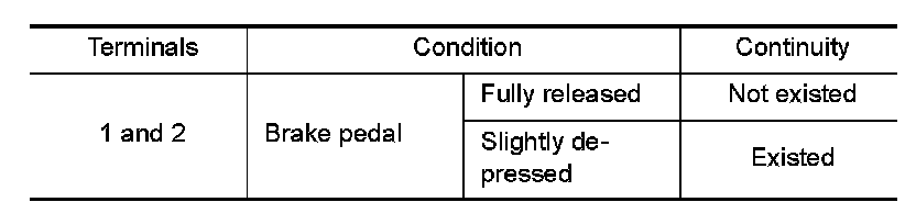 2.Check the continuity between stop lamp switch terminals under the following conditions.