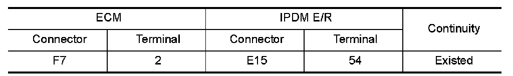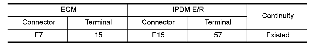 4.Check the continuity between ECM harness connector and IPDM E/R harness connector.