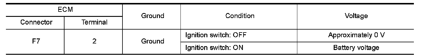 Check the voltage between ECM harness connector and ground under the following conditions.