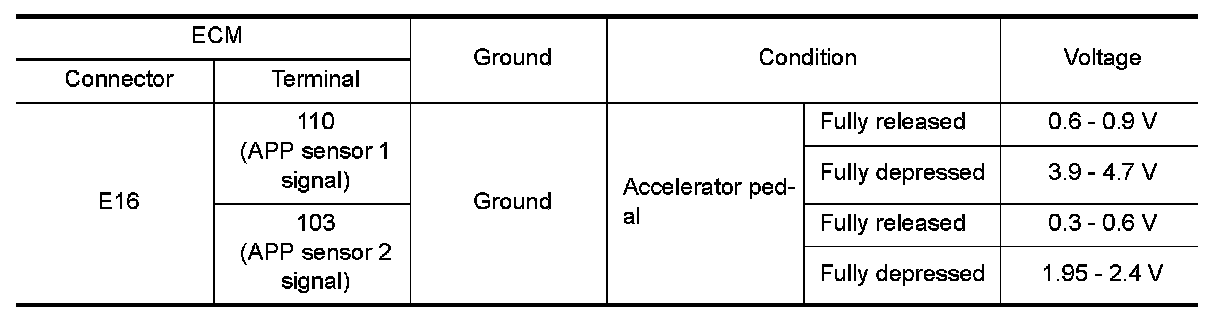 1.Check the voltage between APP sensor harness connector and ground.