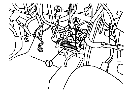 2.Remove the inside key antenna (instrument center) mounting screw (A), and then remove inside key antenna (instrument center) (1).