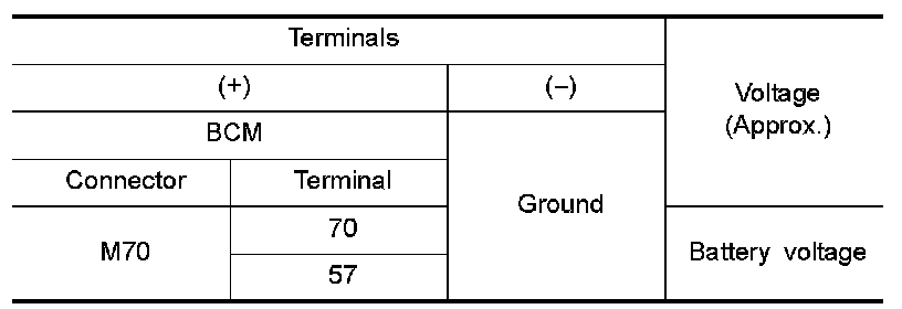 3.Check voltage between BCM harness connector and ground.