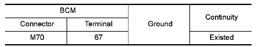 Check continuity between BCM harness connector and ground.
