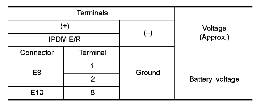 3.Check voltage between IPDM E/R harness connector and the ground.
