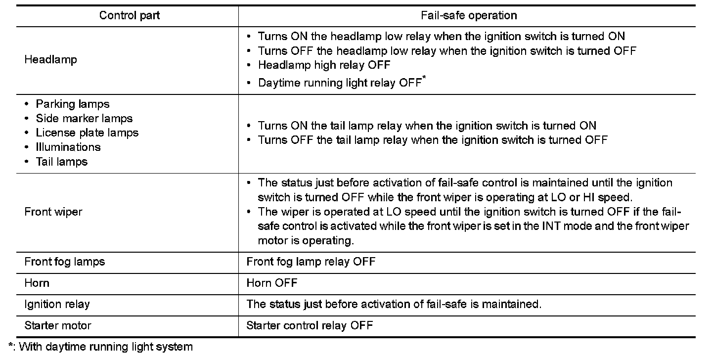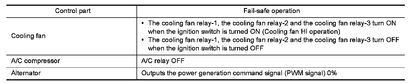 When CAN communication with ECM and BCM is impossible, IPDM E/R performs fail-safe control. After CAN