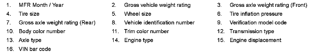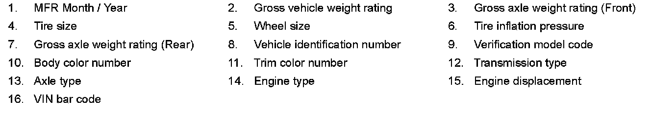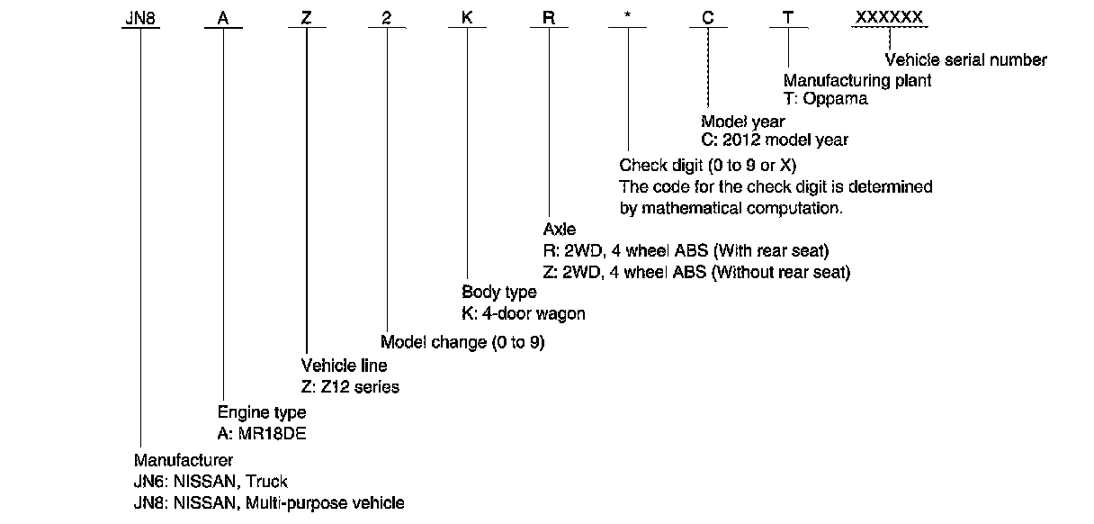 VEHICLE IDENTIFICATION NUMBER ARRANGEMENT