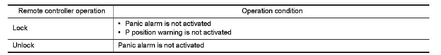 - When BCM receives the door lock/unlock signal, it operates all door lock actuators and the hazard lamp (lock: 2 times, unlock: 1 time) and horn chirp signal to IPDM E/R at the same time as a reminder.