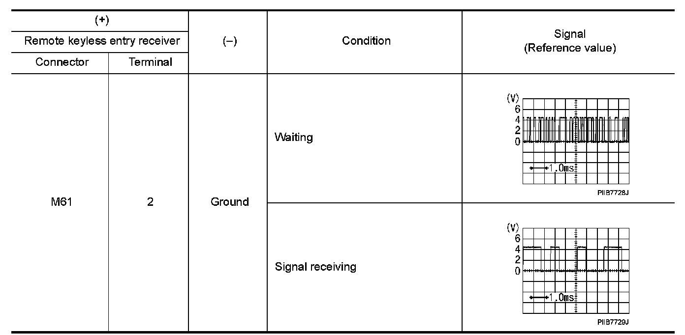 2.Check signal between remote keyless entry receiver harness connector and ground using oscilloscope.
