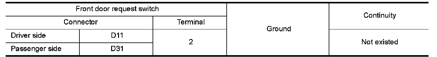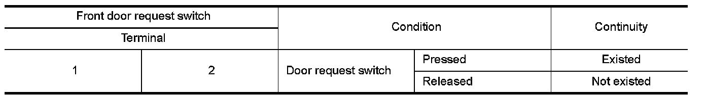 3.Check continuity between malfunctioning front door request switch terminals.