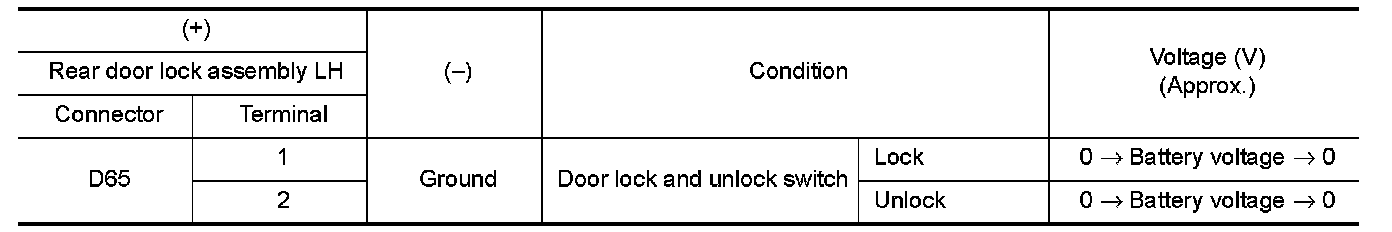 3.Check voltage between rear door lock assembly LH harness connector and ground.
