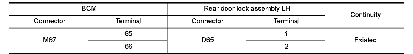 2.Check continuity between BCM harness connector and rear door lock assembly LH harness connector.