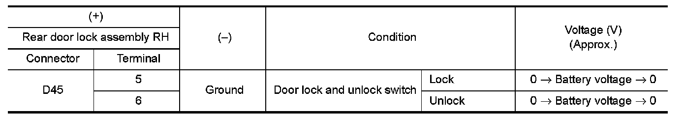 3.Check voltage between rear door lock assembly RH harness connector and ground.