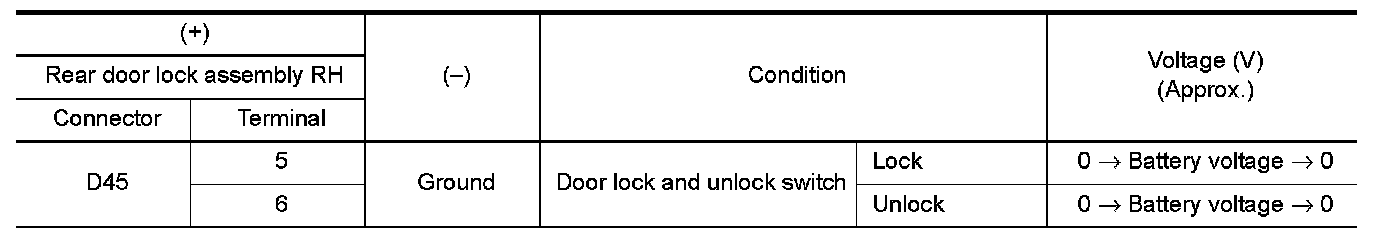 3.Check voltage between rear door lock assembly RH harness connector and ground.