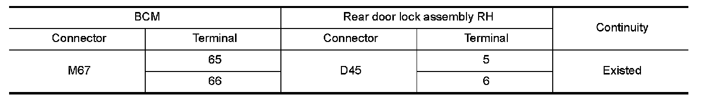 2.Check continuity between BCM harness connector and rear door lock assembly RH harness connector.