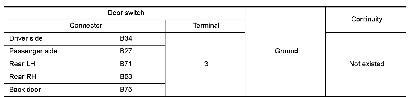 3.Check continuity between door switch harness connector and ground.