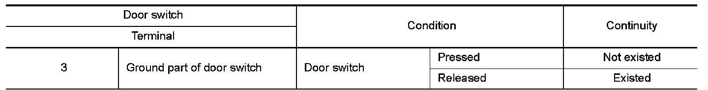 3.Check continuity between door switch terminals.