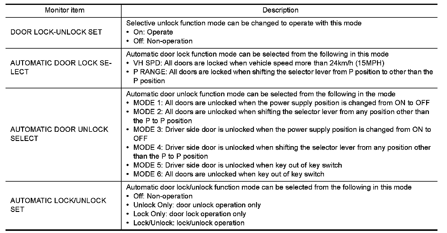 DOOR LOCK : CONSULT Function (
