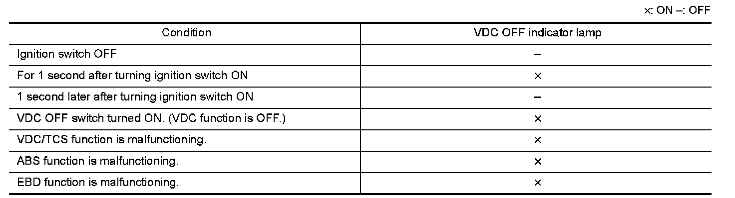Check that the VDC OFF indicator lamp in the combination meter turns ON/OFF correctly when operating the