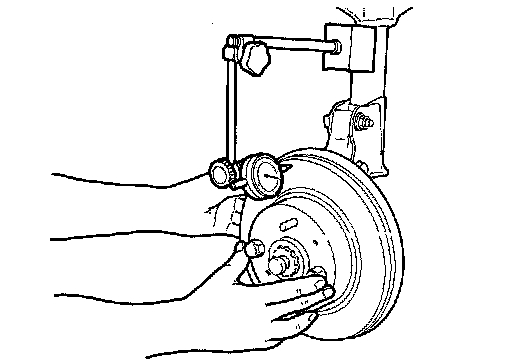 4.Find the installation position that has a minimum runout by shifting the disc rotor-to-wheel hub and bearing assembly installation position by one hole at a time if the runout exceeds the limit value.