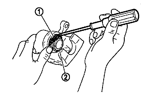 3.Apply rubber grease to piston boots (1). Cover the piston (2) end with piston boot, and then install cylinder side lip on piston boot securely into a groove on cylinder body.