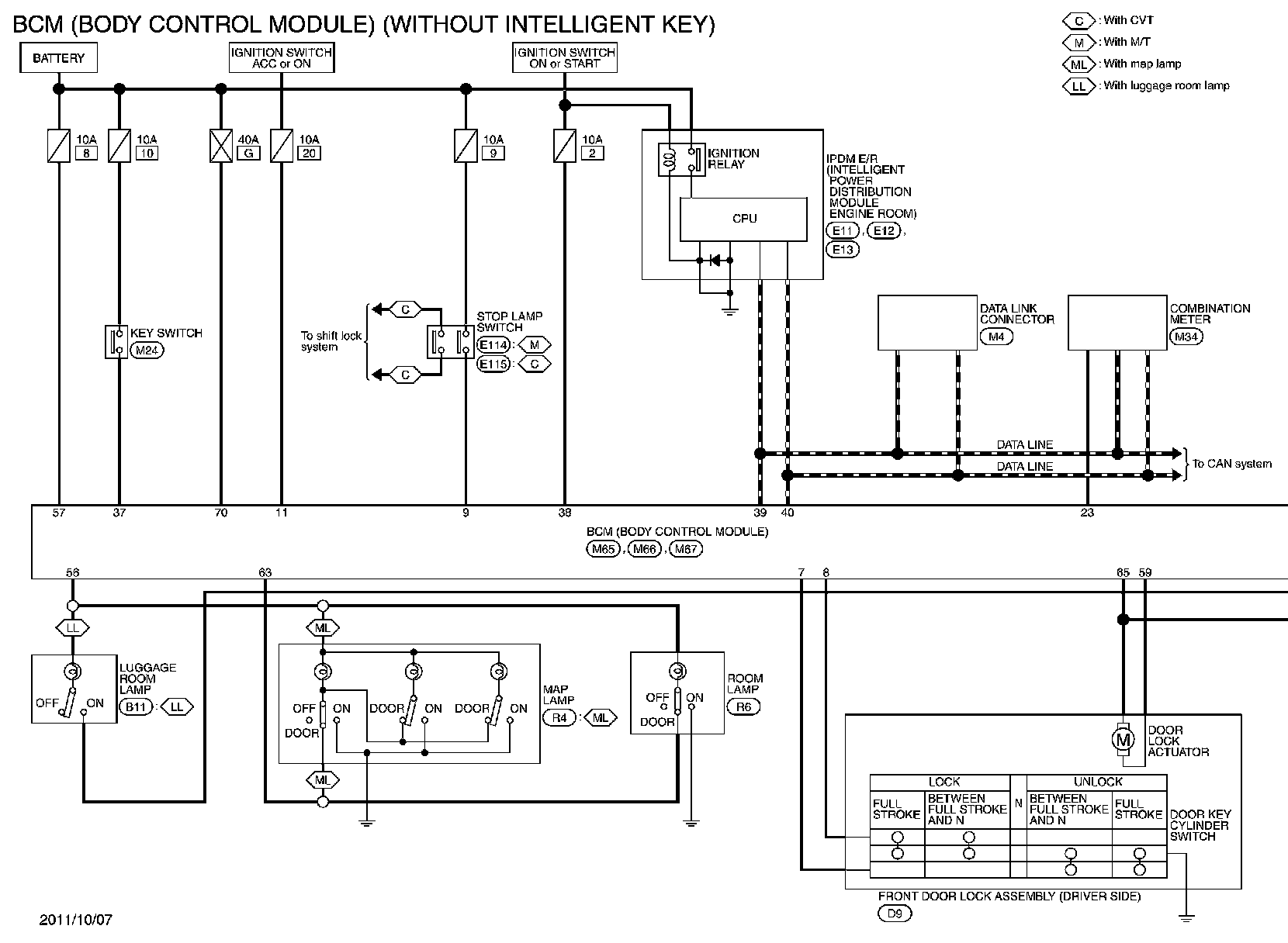 WITHOUT INTELLIGENT KEY : Wiring Diagram - BCM