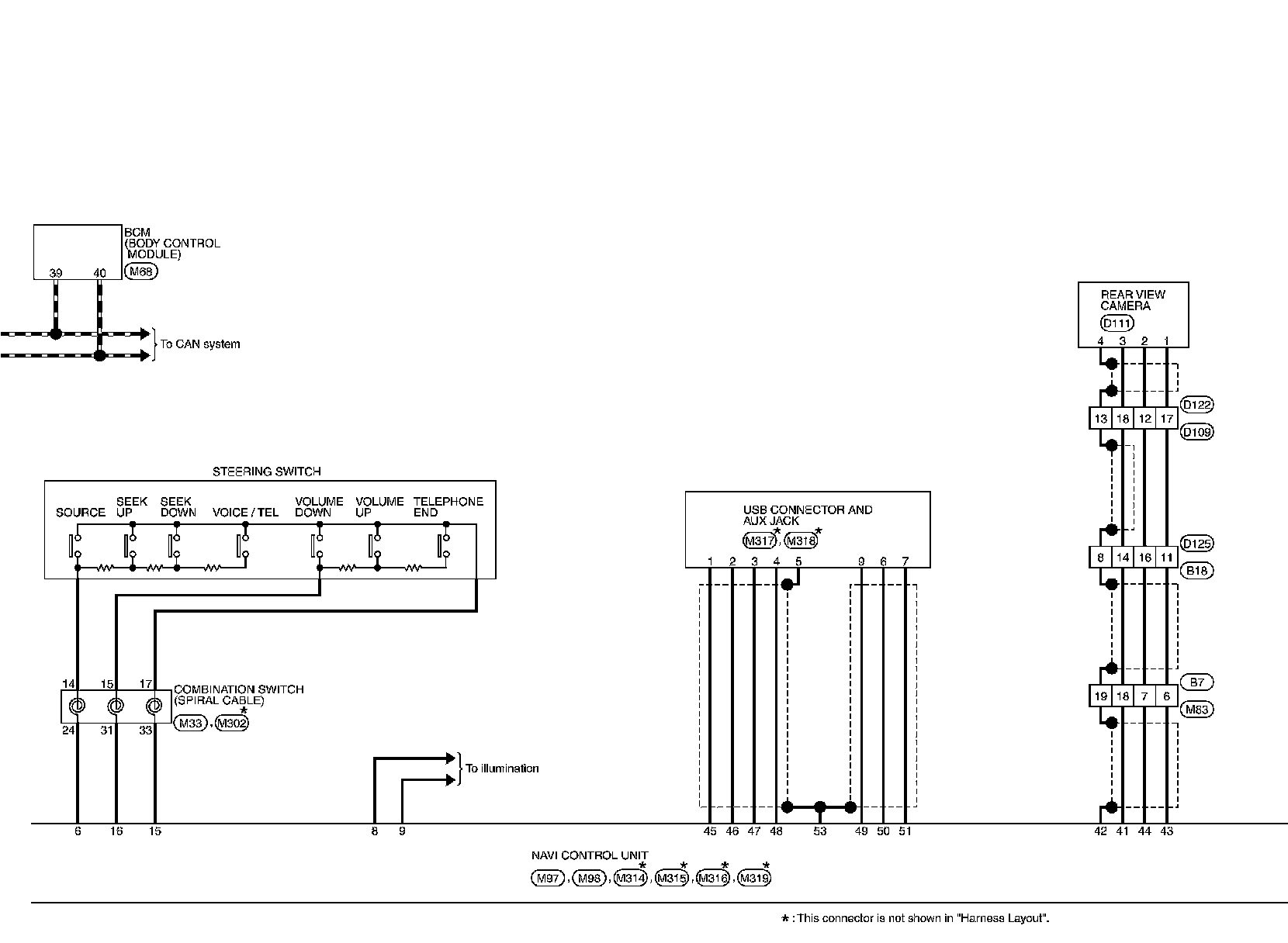 For connector terminal arrangements, harness layouts, and alphabets in a (option abbreviation; if not described in wiring diagram),