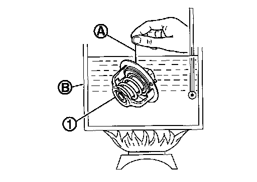 - Place a thread (A) so that it is caught in the valves of water control valve (1). Immerse fully in a container (B) filled with water. Heat while stirring.