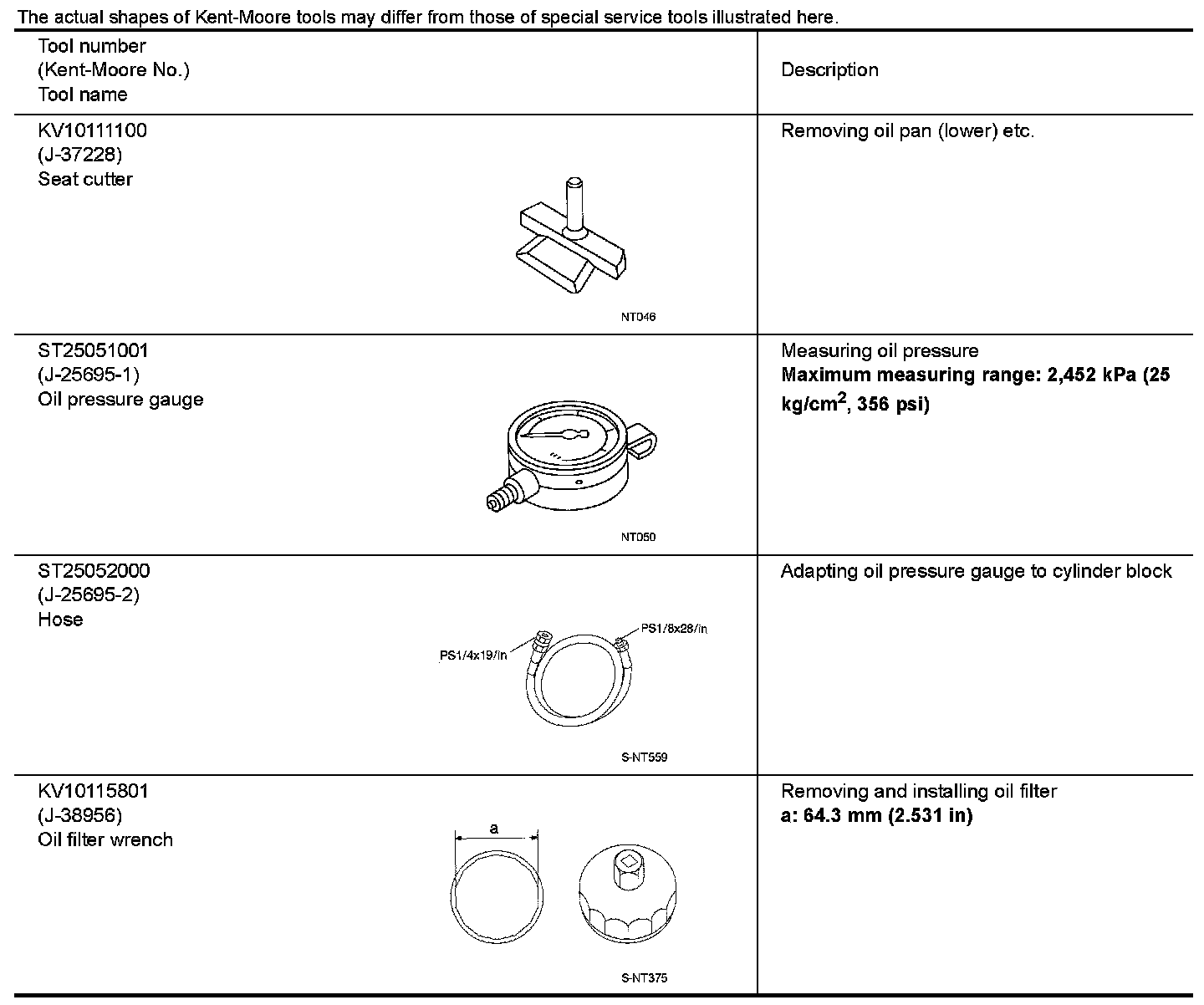 The actual shapes of Kent-Moore tools may differ from those of special service tools illustrated here.