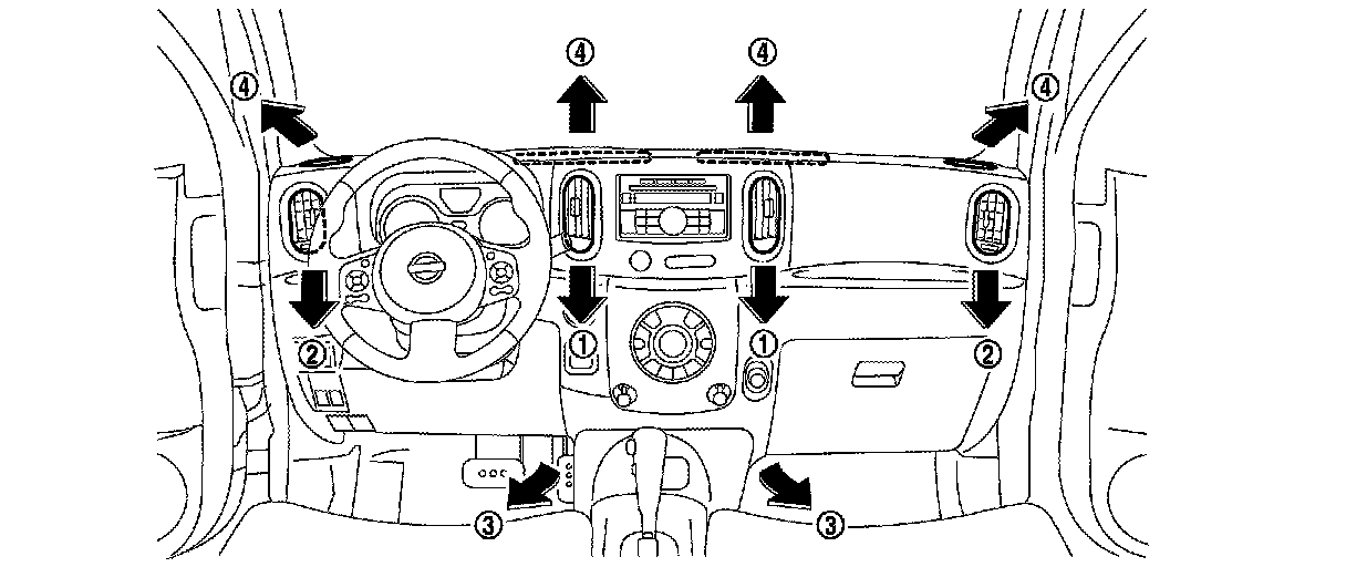 Ventilation system is controlled by A/C auto amp. (AUTOMATIC AIR CONDITIONING) or A/C control (MANUAL AIR CONDITIONING and MANUAL HEATER). For details of air conditioning system, System Description (AUTOMATIC AIR CONDITIONING), System Description (MANUAL AIR