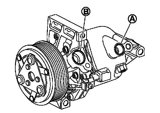 1.Drain lubricant from high-pressure port (A) and low-pressure port (B) while rotating magnet clutch.