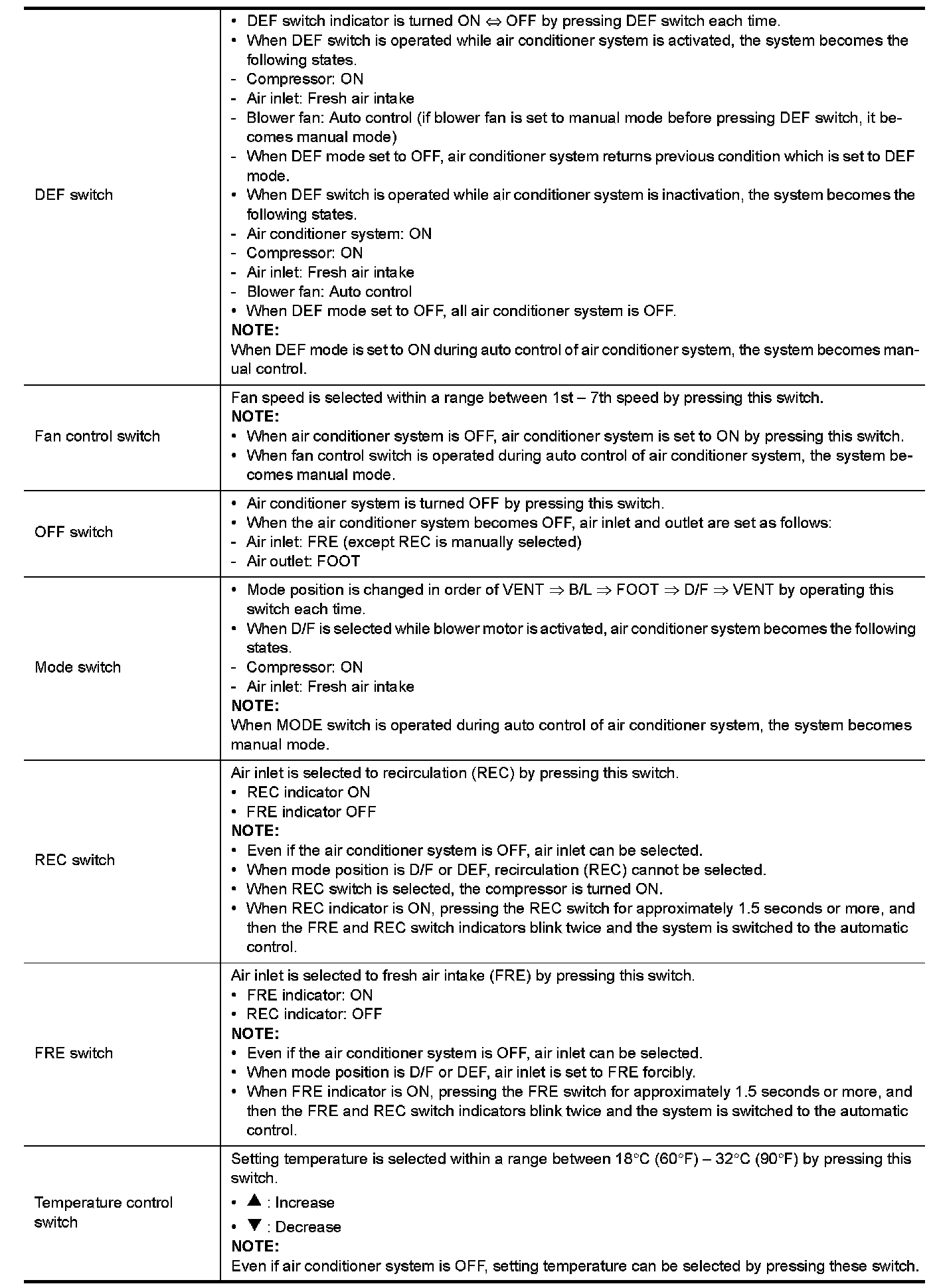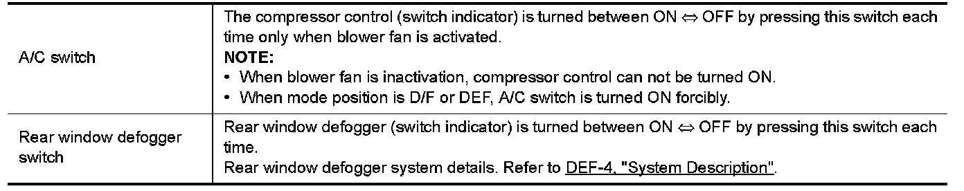 - When ignition switch is in the ON position, A/C auto amp. always automatically controls temperature regardless of air conditioner operational state.