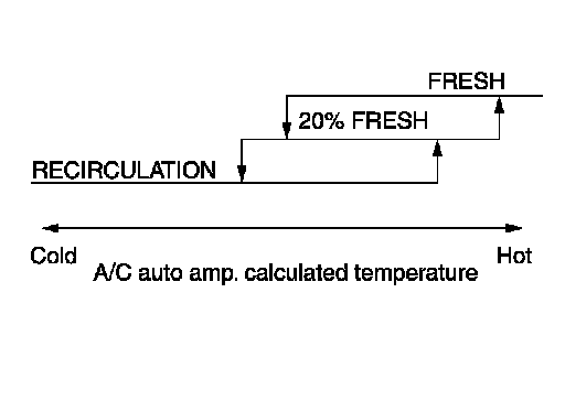 - While air inlet is in automatic control, A/C auto amp. selects air inlet (fresh air intake, 20% fresh air intake, or recirculation)