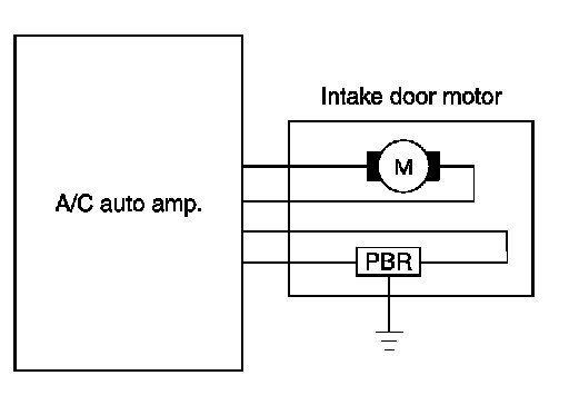 Intake door motor. When intake door motor receives the control signal, intake door is moved to appropriate position by PBR opening angle indication signal.