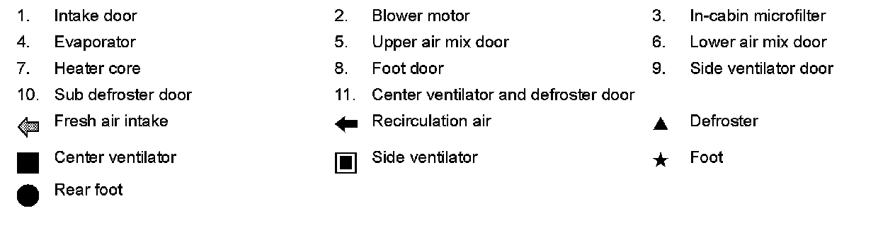 - Regardless of in-vehicle temperature, ambient temperature, and sunload, air mix door is fixed at the fully cold position when set temperature is 18�