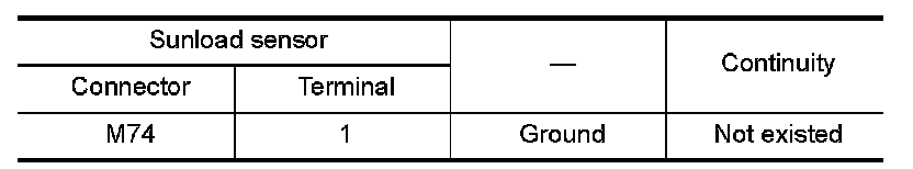 2.Check the input voltage from sunload sensor between A/C auto amp. harness connector and the ground.