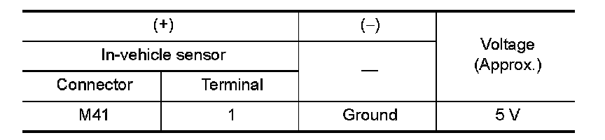 3.Check the resistance between the in-vehicle sensor terminals. Refer to the applicable table for the normal value.