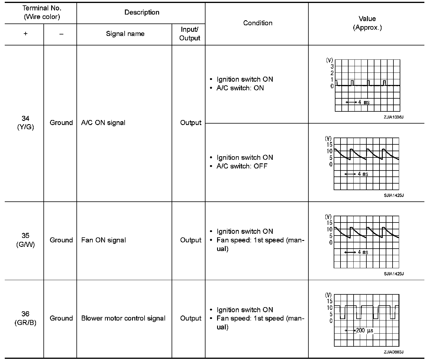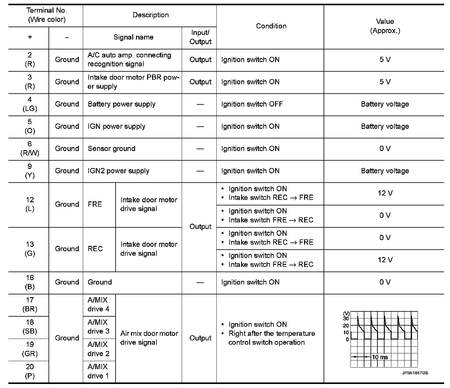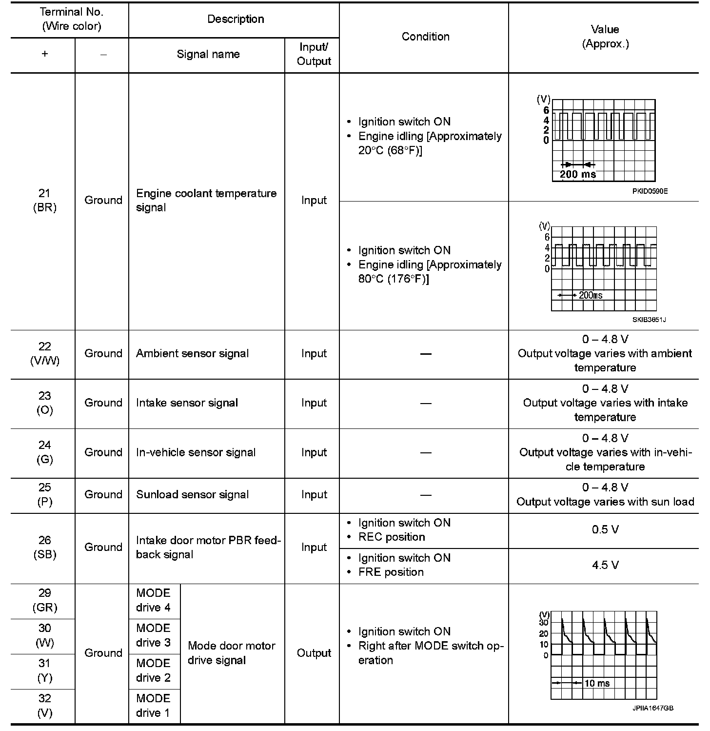 Pinout Values and Diagnostic Parameters