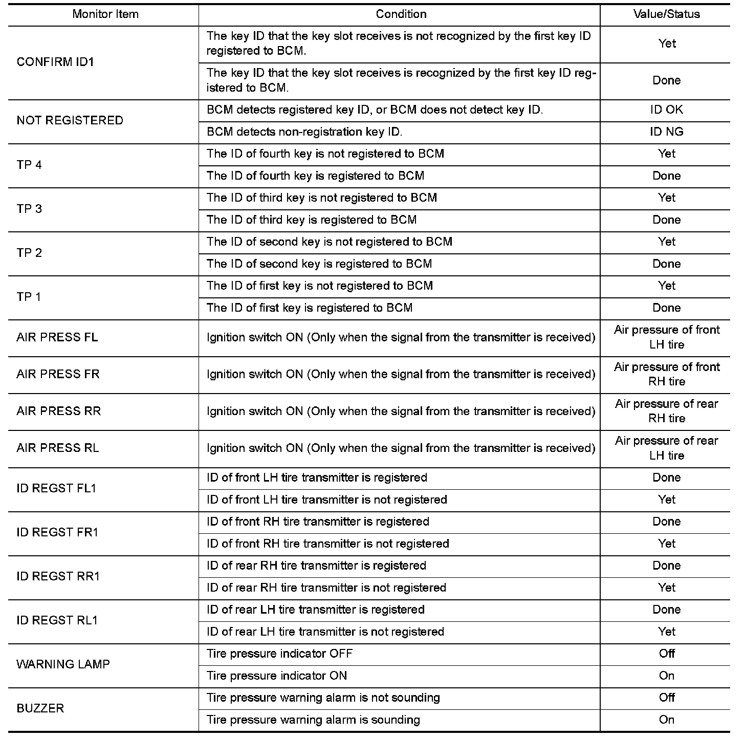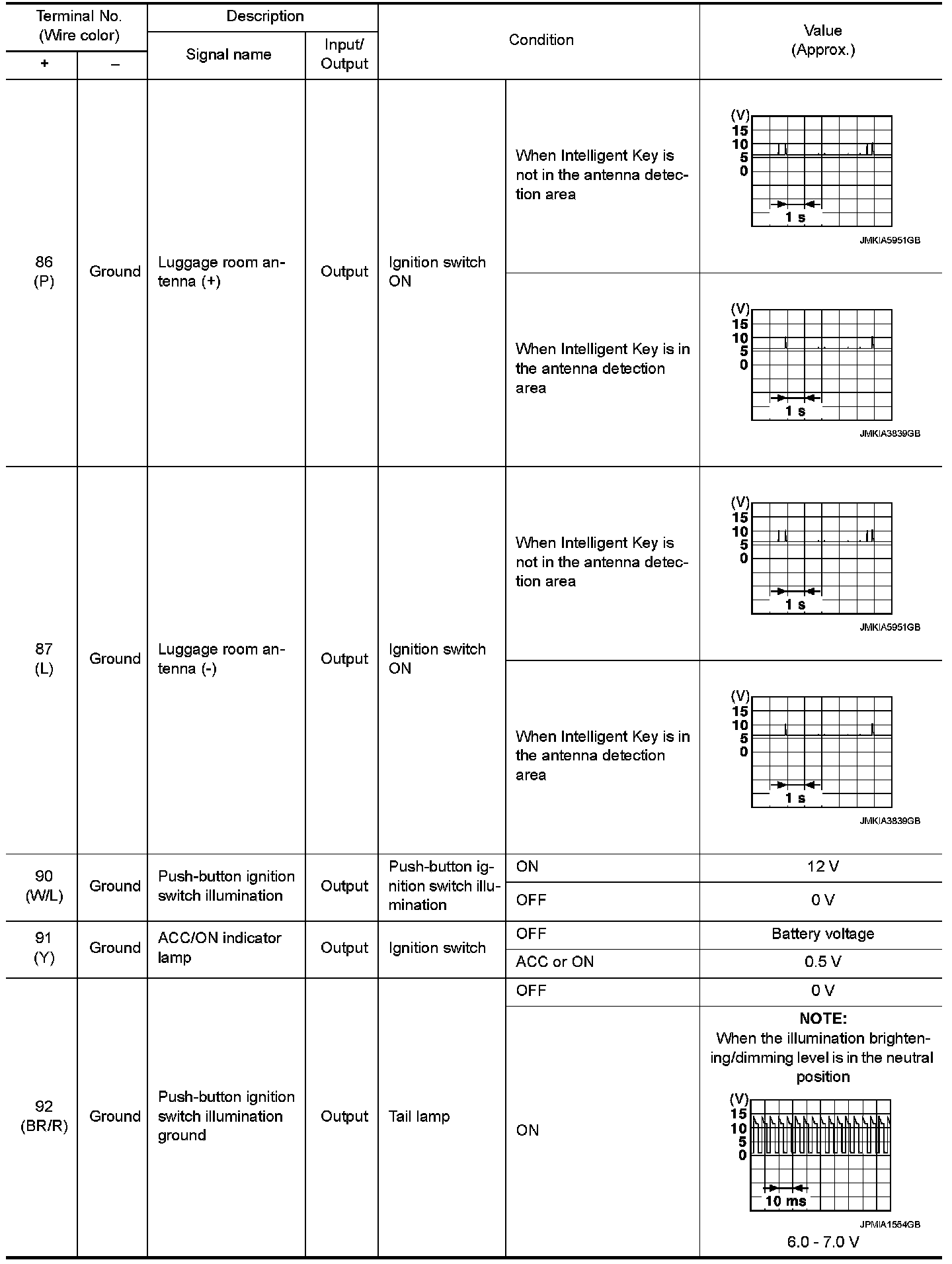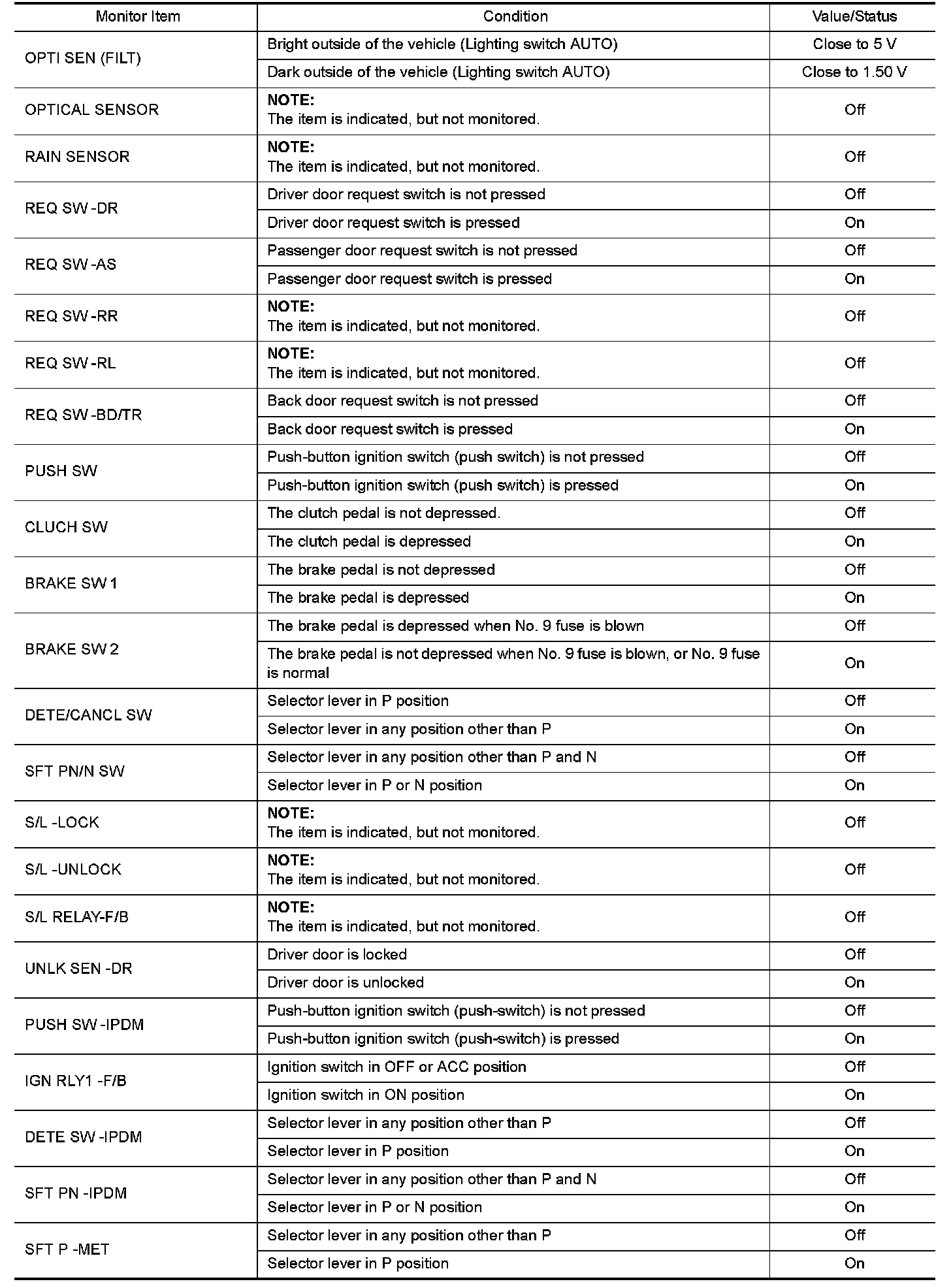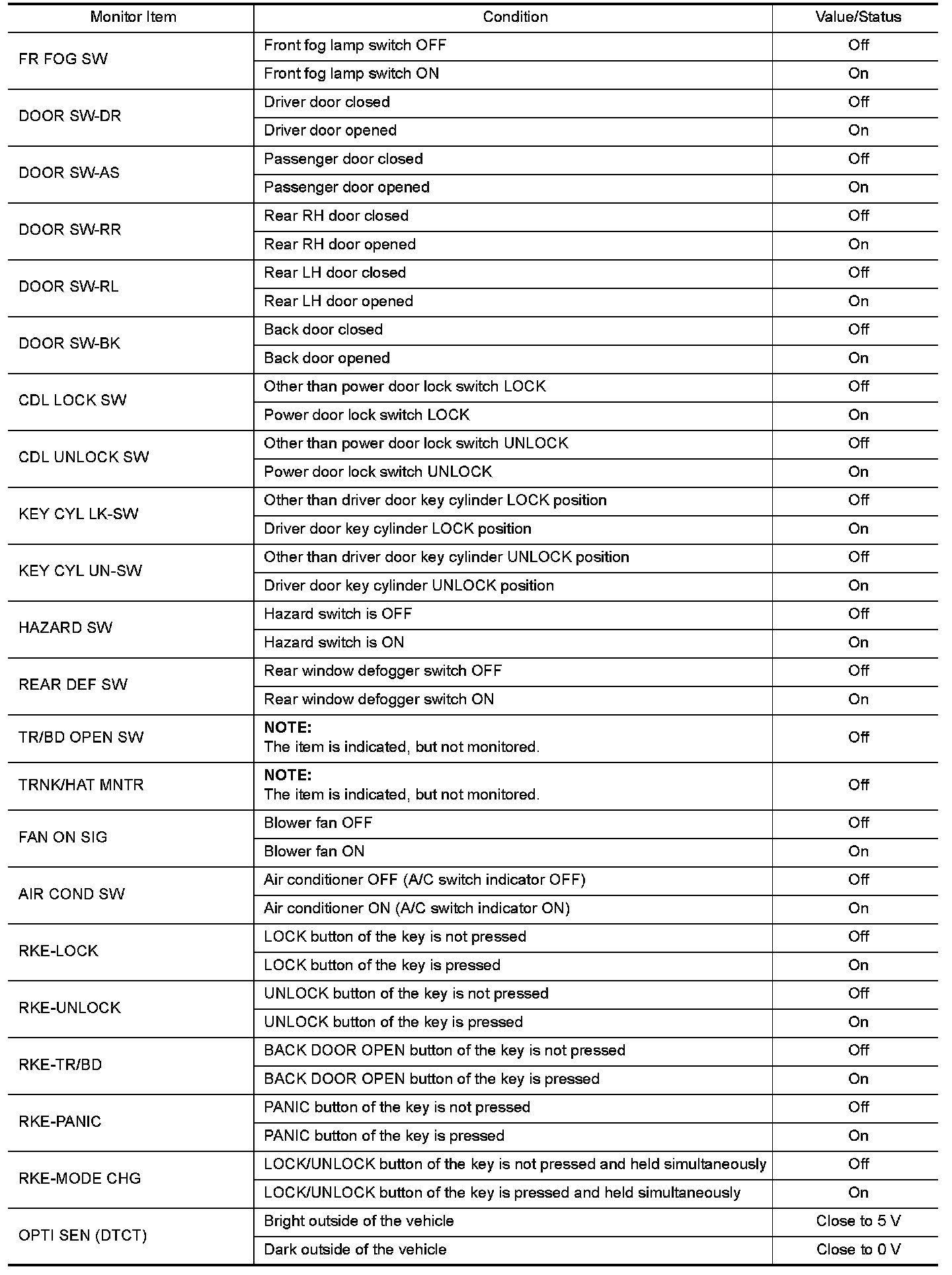 BCM (BODY CONTROL SYSTEM) (WITH INTELLIGENT KEY SYSTEM) : Reference Value