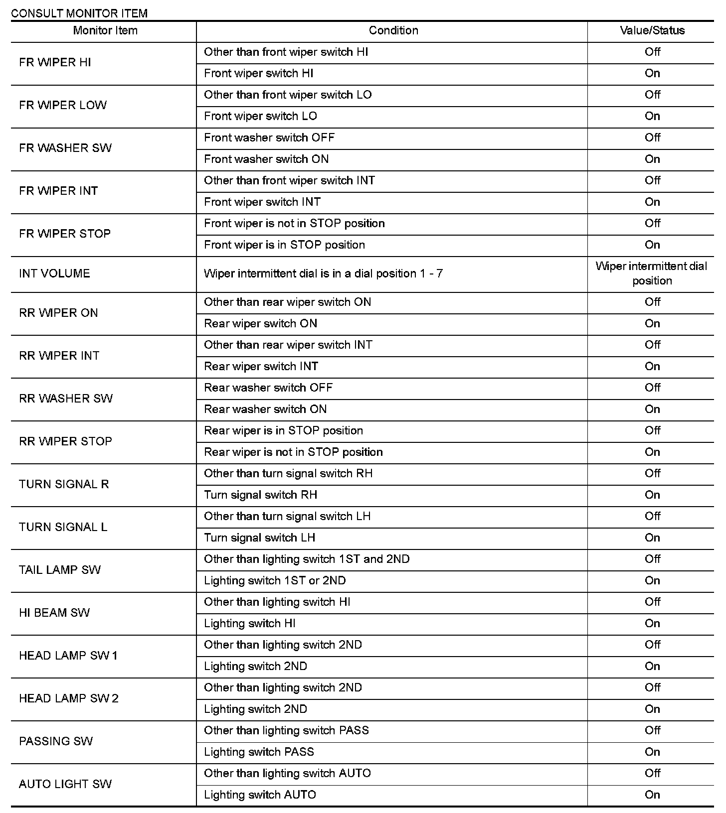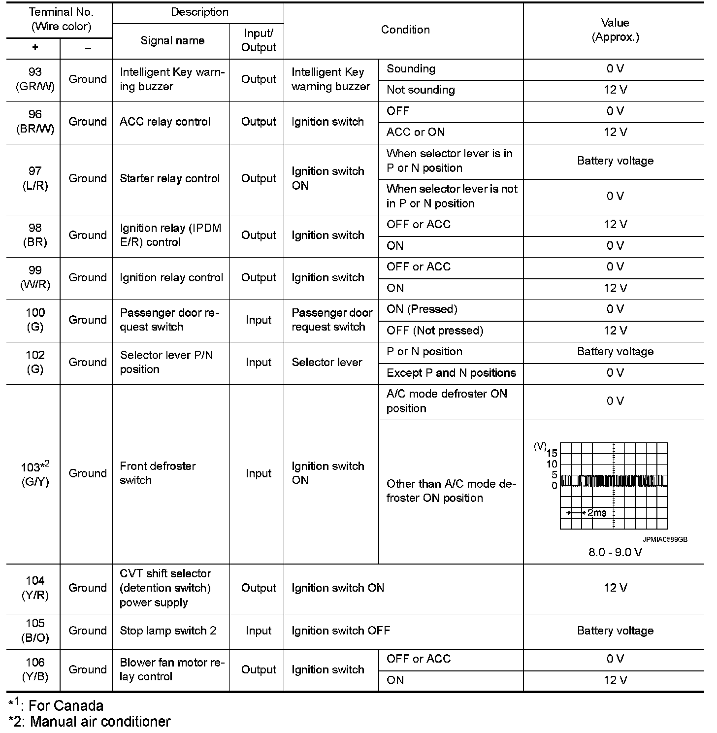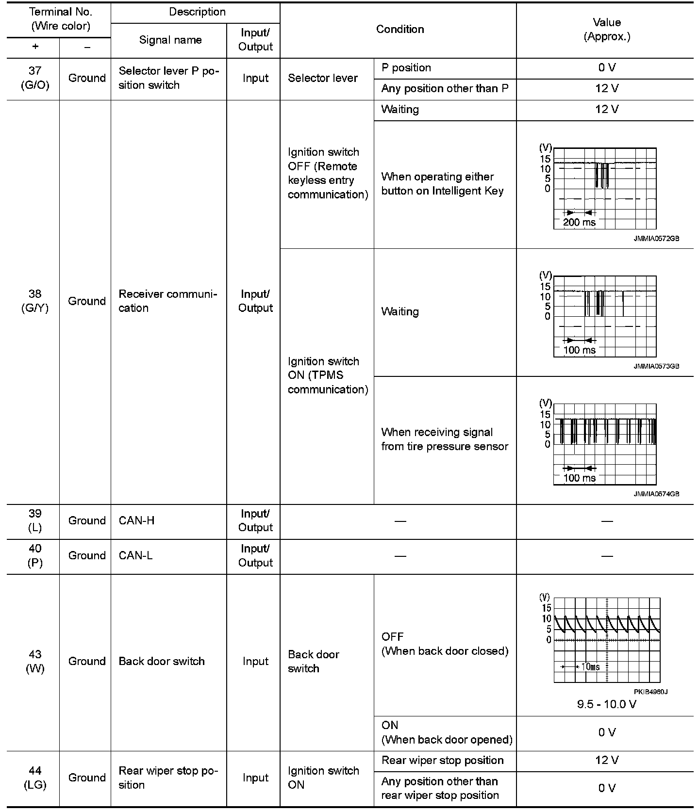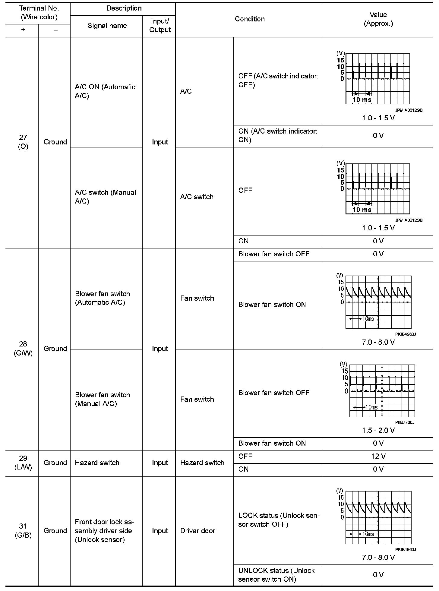 BCM (BODY CONTROL SYSTEM) (WITH INTELLIGENT KEY SYSTEM) : Reference Value