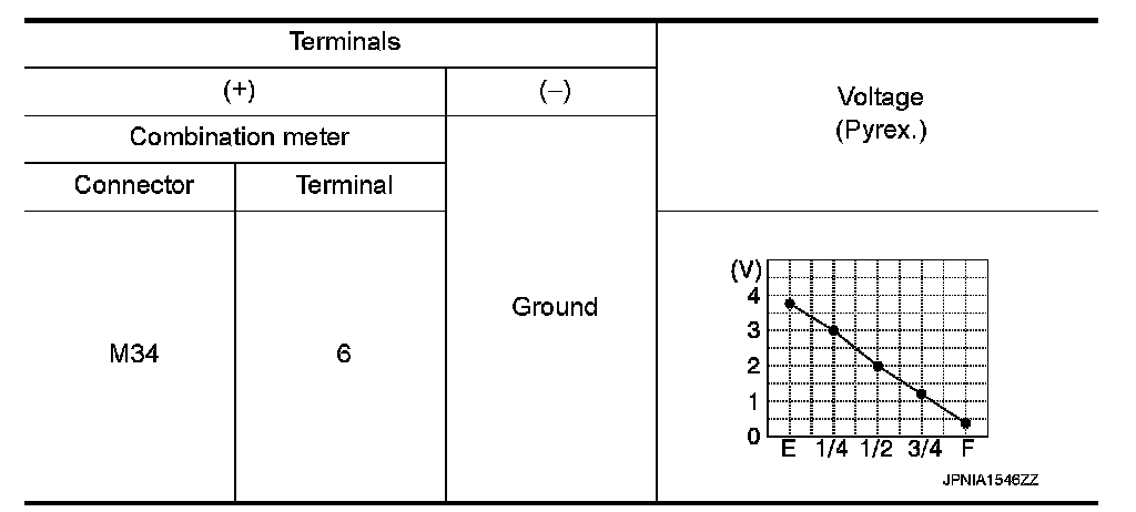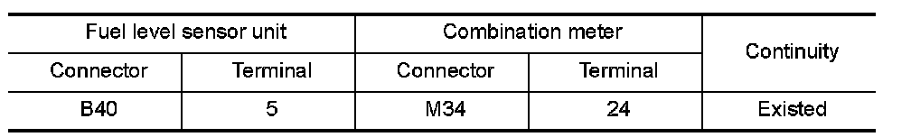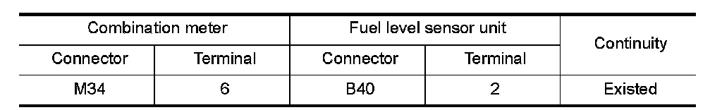 3.Check continuity between combination meter harness connector and fuel level sensor unit harness connector.