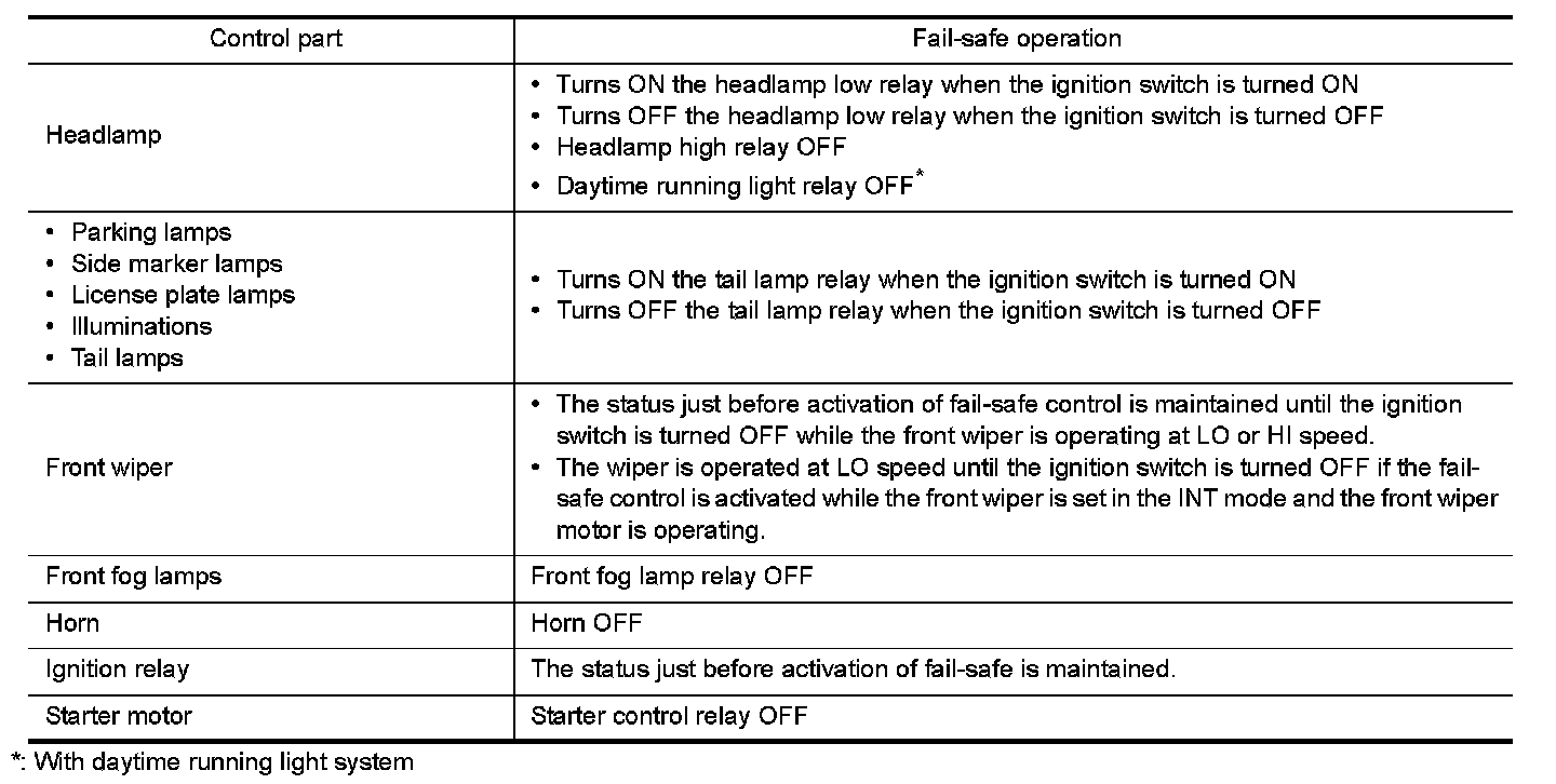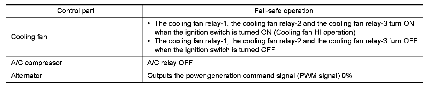 When CAN communication with ECM and BCM is impossible, IPDM E/R performs fail-safe control. After CAN