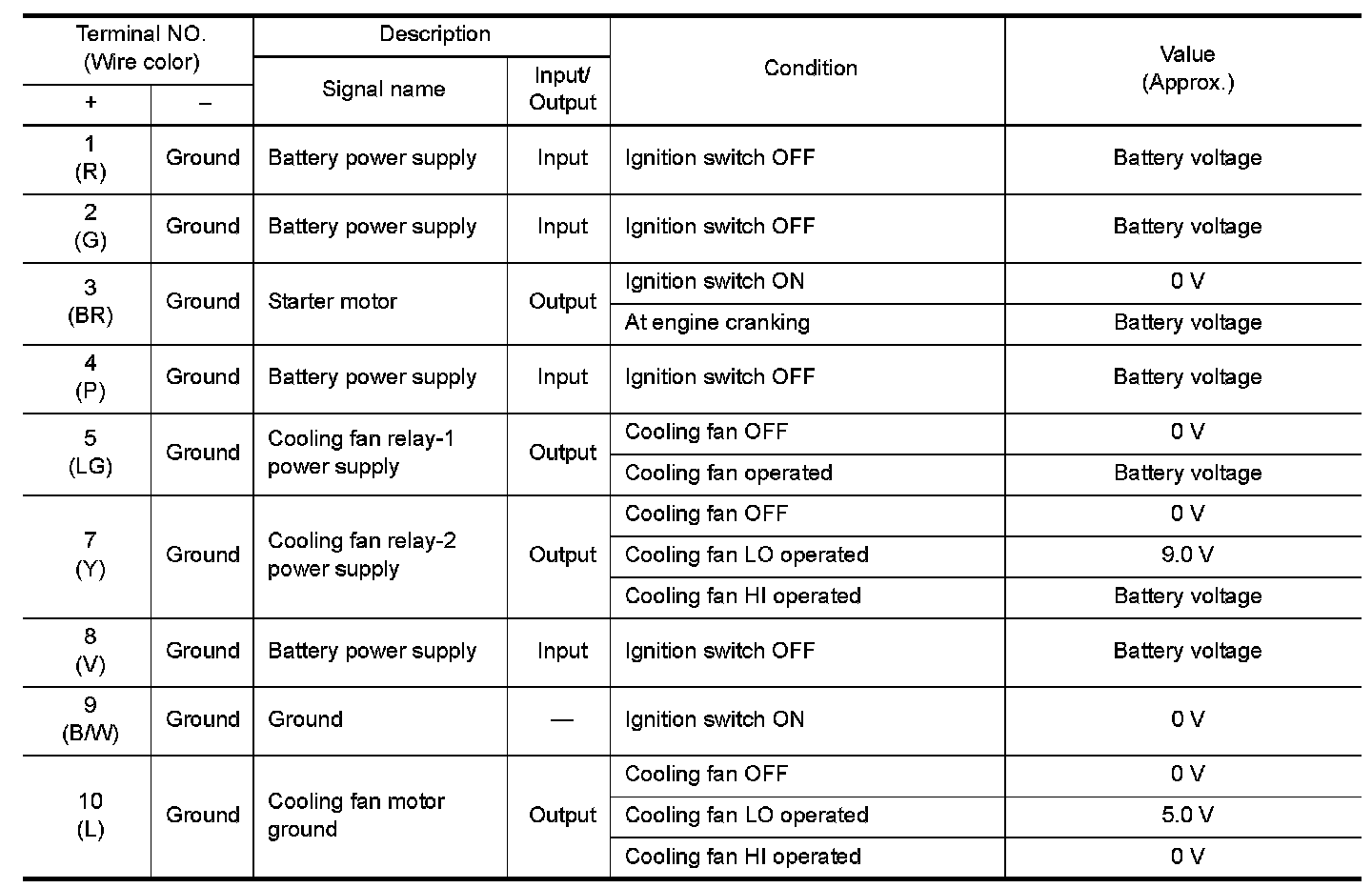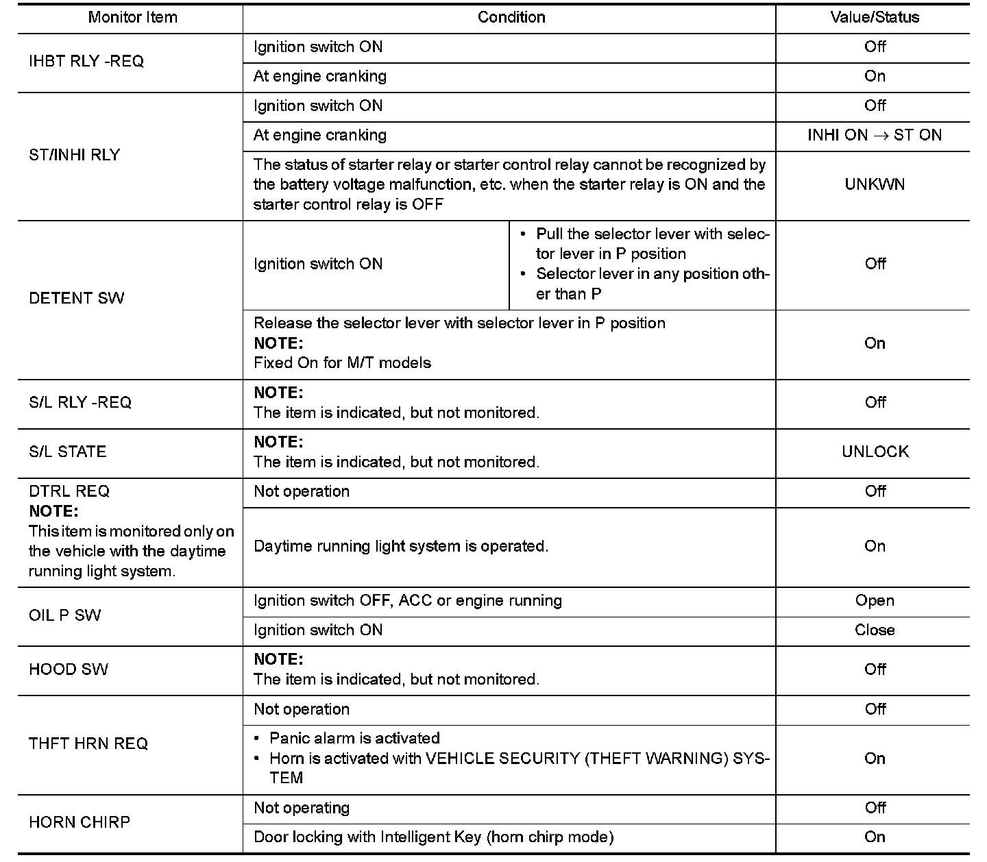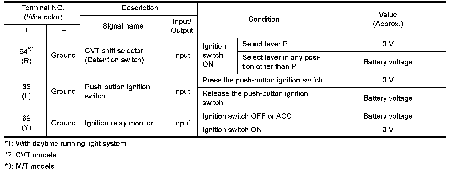 WITH INTELLIGENT KEY : Reference Value