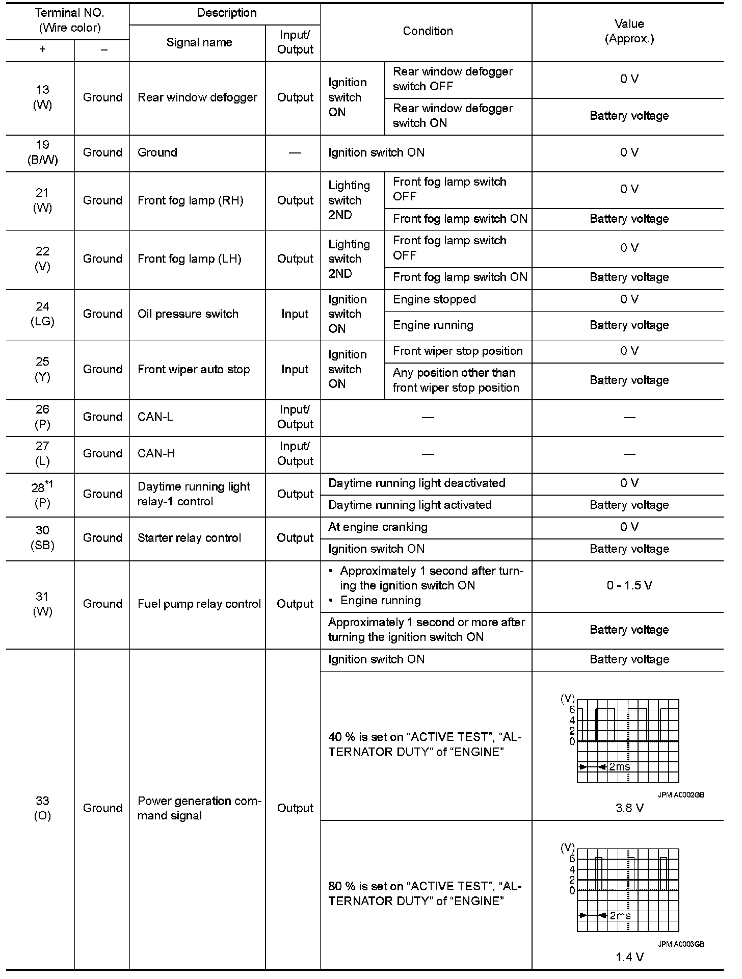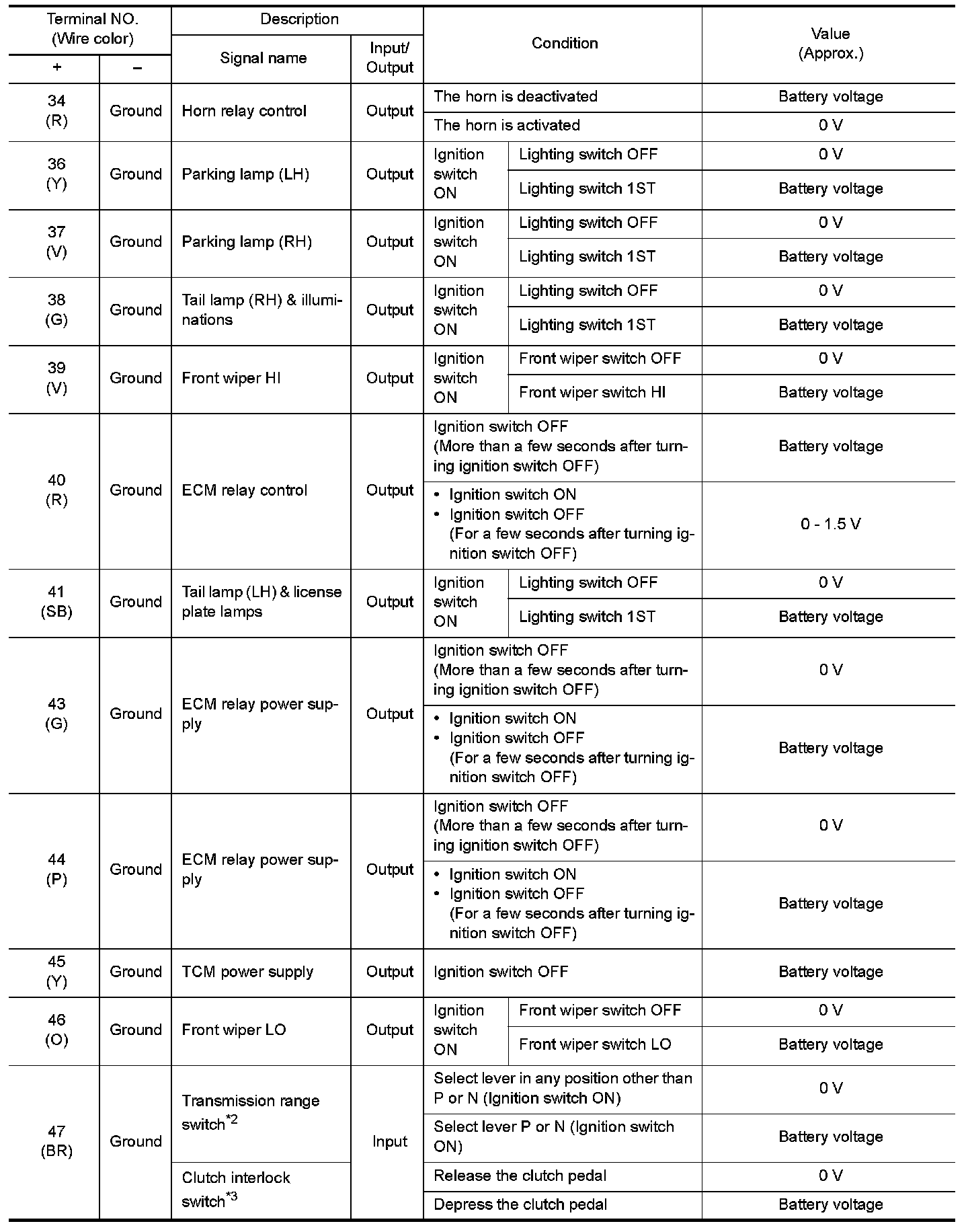 Pinout Values and Diagnostic Parameters